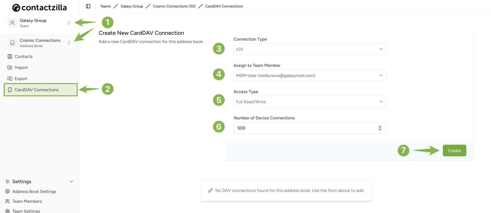 Once you’ve created an MDM team member, follow these steps to set up the MDM CardDAV connection: