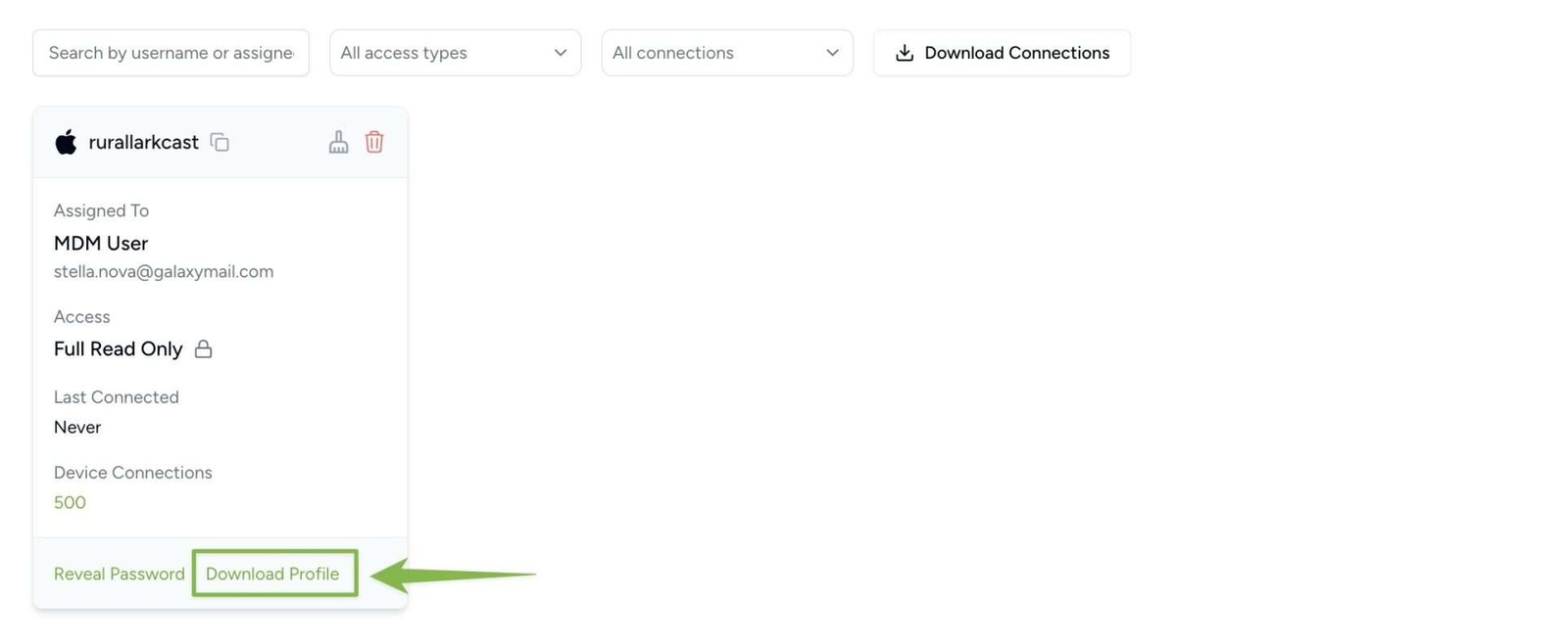 - The connection password is only revealed once. Save it immediately or use the provisioning profile.